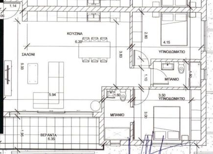 An apartment of 56 sq.m is for sale on the Kassandra peninsula, Halkidiki region. The apartment is located on the second floor and consists of 2 bedrooms, a living room with a kitchen, one shower room. The windows overlook the sea and the forest. The property has a fireplace, air conditioning, awnings. The property is sold furnished. The...