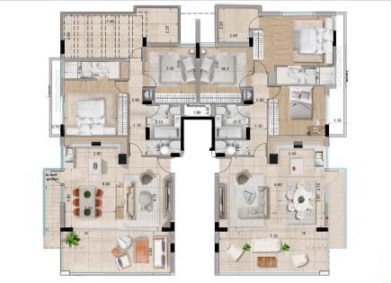 The modern apartment, located in a residential complex with a unique oval architecture, offers apartments with 3 and 4 bedrooms. Due to its outstanding and memorable design, the complex will become a new architectural landmark of the area. The spacious interiors and stunning views of the sea and the city create an atmosphere of comfort and...
