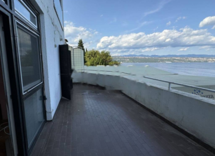 This spacious apartment in Opatija offers a breathtaking view of the sea from the first line. It occupies a total of 126 m2 and includes two separate living spaces, which, if desired, can be combined into one large 2.5-room apartment. The main space consists of one bedroom, a spacious living room, a kitchen with a dining area, a small room and a...