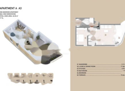 We offer a cozy and fully equipped apartment located in sunny Opatija with a total area of 50 m2. This elegant apartment, decorated with great taste, includes one bedroom, a kitchen connected to a dining area and a living room, as well as a bathroom and a hallway. A special feature of the apartment is a spacious terrace with a wonderful view...