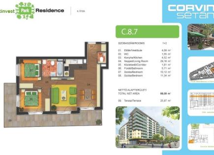 Die Wohnung ist neu in einer trendigen Gegend von Budapest gebaut. In einem im Jahr 2017 erbauten modernen Haus, das sich auf einer schicken grünen Promenade befindet, ist ein möbliertes 2-Zimmer-Wohnung zum Verkauf. Eine grüne Gasse mit Boutiquen, Geschäften, Restaurants und Cafés, mit einem malerischen Brunnen, einem Fitness- und...