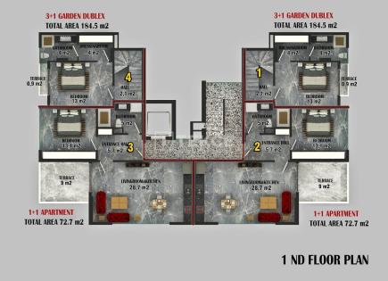 Wohnungen in einer sozialen Einrichtung in Alanya Die Wohnungen befinden sich in zentraler Lage im Viertel der OBA des Distrikts Alanya. Die Apartments zum Verkauf in Alanya sind ungefähr 400 Meter vom Strand entfernt, 640 Meter vom Alanya Education and Research Hospital, etwa 1 km vom Einkaufszentrum von Alanyum entfernt, Metro Grossmarket,...