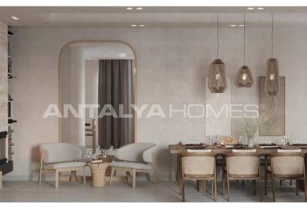 Elegante Villa mit 4 Schlafzimmern nur wenige Schritte vom Meer entfernt in Serik Antalya Die Villa verfügt über eine Stahltür, lackierte Zimmertüren, ein Smart-Home-System, PVC-Fenster, elektrische Jalousien, ein Sport- und LED-Beleuchtungssystem, ein zentrales Satellitensystem und Internetzugang. Sie umfasst eine Inselküche mit...