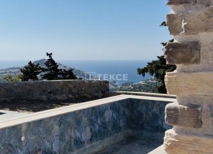 Luxusvilla am Meer mit Panoramablick befindet sich in Bodrum. Sie hat alles nötig für ein angenehmes Leben. Auf dem Gebiet: Schwimmbad, Gehbereiche, Aussichtsterrasse, Spielplatz