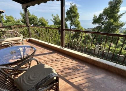 Schöne Villa, umgeben von einem Kiefernwald mit Blick auf die Torone -Bucht des Ägäischen Meeres. Zwei Wohnböden, eine geschlossene Garage von 62 m² Es gibt einen 32 m2 Schwimmbad und einen Pavillon auf dem grünen, gut gepflegten Gebiet. Das Haus befindet sich auf einem Hügel in einem der schönsten Orte auf der Kassandra -Halbinsel. Die...