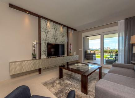 Apartments in Finestrat. Wohnzimmer, Amerikanische Küche, 2 Schlafzimmer, 2 Badezimmer, Terrasse von 27 m2. Die Gesamtfläche beträgt 114 m2. Der Komplex verfügt über einen Gemeinschaftspool und Tiefgaragen. Finestrat liegt nördlich von Alicante: 55 km vom Flughafen El Altet entfernt. Es befindet sich auf dem Kontinent, und die Küste gehört zu...