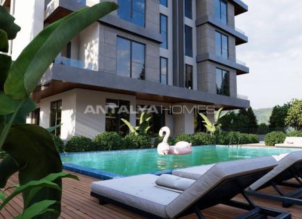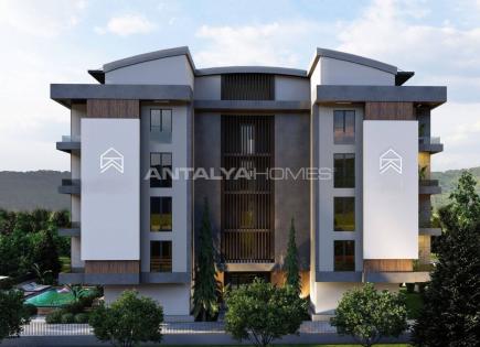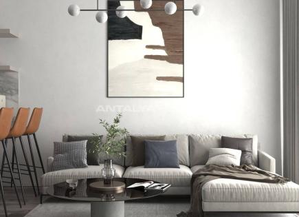 Pisas junto a la playa en un complejo con piscina en Sarisu Konyaalti Los pisos dúplex incluyen 3 o 4 habitaciones, 2 salas de estar y 2 cocinas. Todos están equipados con A/CS, un intercomunicador de video, infraestructura de gas natural, calefacción de piso inferior, una caldera combinada, elegantes sistemas de puertas y ventanas, una unidad...