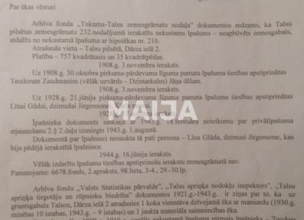 ¡Una hermosa propiedad para los amantes de la historia y la arquitectura! Una casa histórica de madera en Kēniņkalni con una hermosa vista desde arriba del casco antiguo de Talsi, el lago Talsi y la iglesia. Superficie del terreno 0,1801 ha, en la que hay un edificio histórico de madera de 2 plantas con un granero típico de la época. La casa fue...