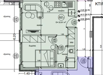 Un apartamento de 40 metros cuadrados está a la venta en la península de Kassandra, la región de Halkidiki. El apartamento está ubicado en el segundo piso y consta de una habitación, una sala de estar con cocina y un cuarto de baño. La instalación tiene aire acondicionado. La propiedad se vende amueblada.