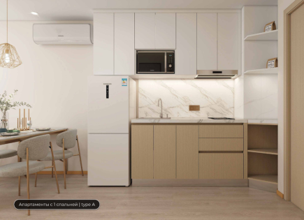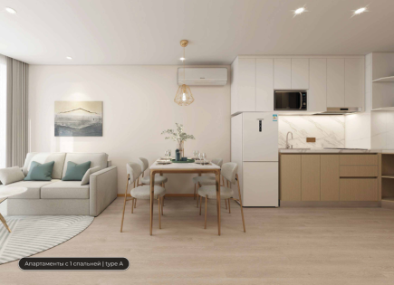À propos de l'appartement: les 38 m². Le studio est situé au troisième étage et se compose d'un salon avec une cuisine américaine, une salle de bain et un balcon. L'appartement est équipé de meubles et d'appareils électroménagers. À propos du complexe: le complexe résidentiel a été construit en 2022 et se compose d'un bloc de 5 étages avec une...