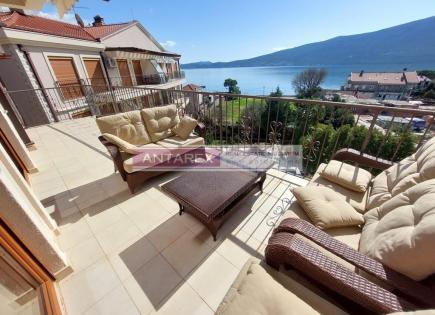 Un penthouse élégant est à vendre dans un complexe fermé situé sur la rive du village pittoresque de Baosici. Surface habitable 141 m², répartition - séjour avec cuisine et coin repas, trois chambres, deux salles de bains, deux grandes terrasses avec vue sur la baie et les montagnes, buanderie. L'appartement a une rénovation design, il y a du...