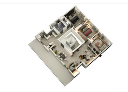 Appartement à vendre avec une superficie de 106 m² dans la banlieue de Thessaloniki en construction. L'appartement est situé au deuxième étage et se compose de 3 chambres, un salon avec une cuisine, une salle de bain, une salle de bain, un garde-manger. L'appartement a un coin d'angle. L'installation dispose de panneaux solaires pour le...