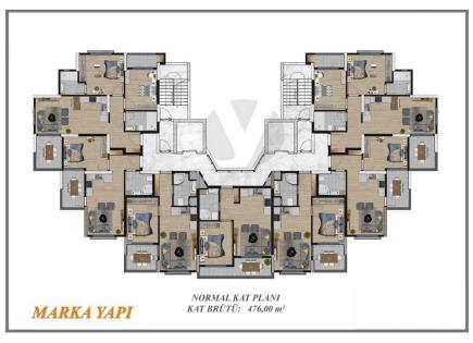 Luxury 4 + 1 complexe d'appartements à Mezitli, Mersin - MALL41 nouveau complexe de luxe à Mesitli, Mersin Le premier littoral Convient à la citoyenneté turque Convient à un permis de séjour Appartements 4 + 1 Hall d'entrée avec armoire intégrée, salon avec cuisine, 4 chambres, 2 salles de bains, hammam, dressing, balcon Armoires...
