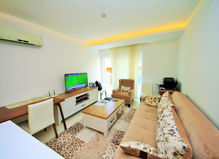 Un appartement de luxe à 250 mètres de la mer Méditerranée est à vendre. L'appartement a une disposition 1 + -1 avec une zone de pique-nique. (maternelle) Disposition des appartements: salon combiné à une cuisine de style américain avec accès à un balcon, chambre, chambre spacieuse. L'appartement est vendu avec des meubles et des appareils...
