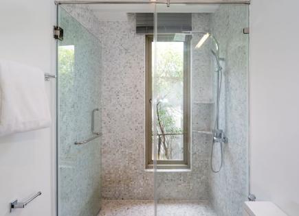 Each villa has 5 bedrooms with bathrooms. The spacious living room with high ceilings is located on the second floor and has direct access to the terrace with swimming pool. The third floor is completely occupied by the master bedroom. There are two bedrooms on the fourth floor, and three guest bedrooms on the fifth floor. The lowest, ground...