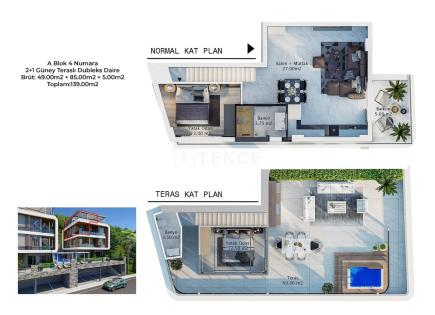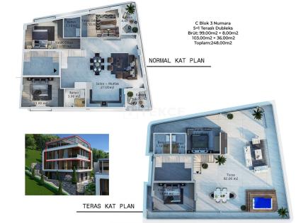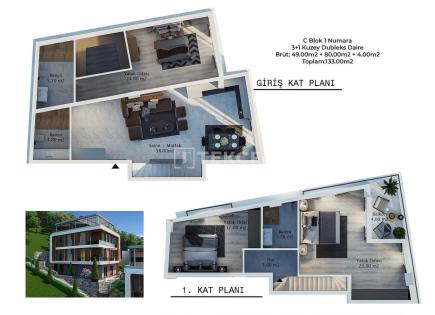 The duplex apartment is located in Sarısu, Konyaaltı, a location surrounded by nature and close to both the beach and mountains. The duplex is within a 2845 m² site with 3 blocks and 54 units. The site has a bus stop at the entrance, offering easy access to public...