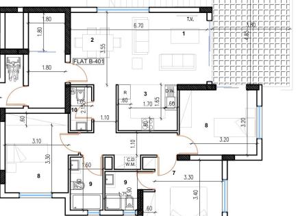 Il codice oggetto è 1.30.13.11411 attico con 3 camere da letto e una terrazza privata di 235 mq. in un complesso residenziale d'élite nella città di Budva.