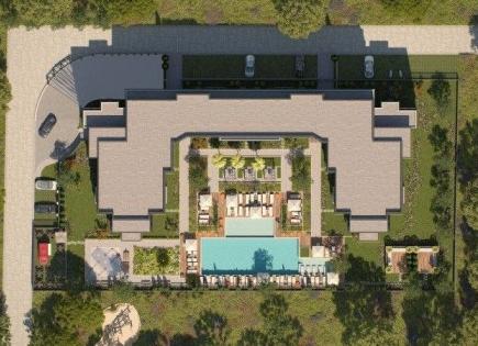 L'appartamento con una superficie totale di 135 m² si trova al secondo piano. È composto da un corridoio, un soggiorno con angolo cottura, tre camere da letto, due bagni e due balconi. L'appartamento è arredato con mobili di alta qualità e tutti gli elettrodomestici necessari. Ha una vista sul territorio del complesso....