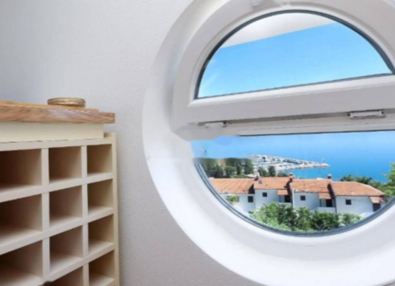 L'appartamento spazioso e modernamente arredato di 69 m2 si trova al secondo piano di un edificio recente con una vista straordinaria sul mare e sul Golfo del Quarnero. Viene offerto in vendita con tutti i comfort, tra cui una sauna in comune, una piscina riscaldata e un posto auto privato in garage.