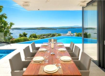 Villa eccezionale di nuova costruzione sull'isola di Hvar in vendita. Si trova in una posizione privilegiata in una piccola baia tranquilla e ha due piani collegati da una scala interna in legno con un corrimano di vetro. Il piano terra è costituito da un soggiorno estremamente spazioso con un camino, una cucina a concetto aperto con sala da...