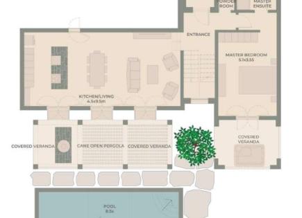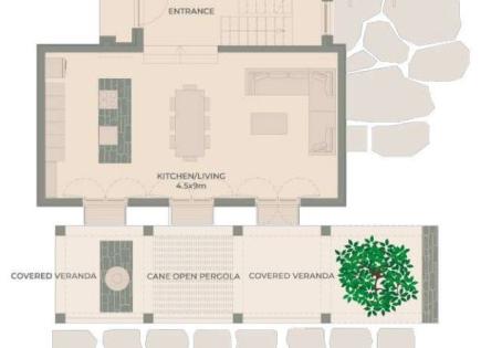 La villa è caratterizzata da una camera da letto principale privata e spaziosa all'ultimo piano e due verande private. Al piano terra ci sono due camere da letto separate dalle zone giorno da un ingresso accogliente. La cucina a pianta aperta e lo spazio vivente interno fluiscono naturalmente in una spaziosa veranda esterna, che è morbida...