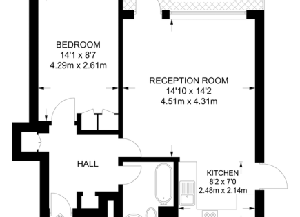 1 letto, 1 bagno, 1 reception, 463 piedi quadrati, classificazione EPC: C