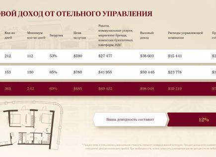 Questo appartamento spazioso e moderno è un'opzione ideale sia per la vita comoda che per gli investimenti con un reddito garantito. Situato in una zona prestigiosa, combina la comodità del servizio alberghiero e il comfort di un'atmosfera familiare....