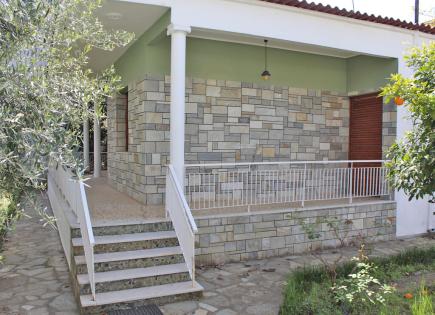 In vendita un cottage a 2 piani con un'area di 96 mq sulla Riviera olimpica. Il piano terra è costituito da un soggiorno con cucina, un bagno per la doccia. Il secondo piano è composto da 3 camere da letto, un bagno. Le camere offrono viste sulle montagne. La struttura dispone di pannelli solari per riscaldamento dell'acqua, camino, aria...