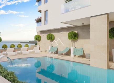 Appartamento con due camere da letto in un nuovo complesso residenziale con piscina e spa in Becici. L'edificio ha 7 piani e 24 appartamenti con vista sul mare, ascensore panoramico, una piscina, una zona di rilassamento, saune e un garage sotterraneo. Distanza dal mare - 400 metri.