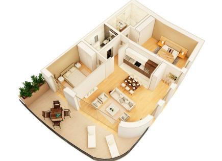 La seconda riga del complesso è la linea del giardino villa 26- Appartamento A2 2 camere da letto, 146m2 Costo: 950000 € /> Dalla terrazza e dal soggiorno c'è una vista laterale del mare e del complesso. il costo di un pacchetto di mobili e accessori: 45 000 €.