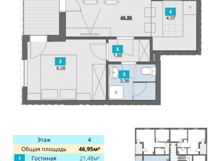 In vendita: un **51 m² appartamento** in nuovo complesso residenziale composto da **due corpi di fabbrica monolitici**. I piani inferiori del complesso dispongono di **parcheggi**.