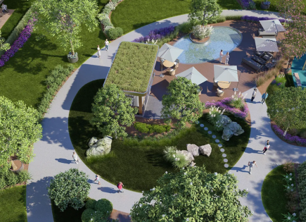 Complesso residenziale basso con ricca infrastruttura interna, in un'area verde nel centro della città. Su un'area di 103.000 piedi quadrati Ci sono 16 blocchi residenziali, un totale di 1.050 appartamenti e 40 unità commerciali. Lungo il complesso residenziale c'è un parco paesaggistico con aree ricreative, gazebo, campi da gioco per bambini e...