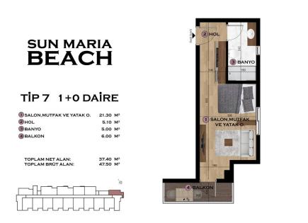 Apartment 1+1 #105 with sea view, Kojahasanli, Mersin - As06105v