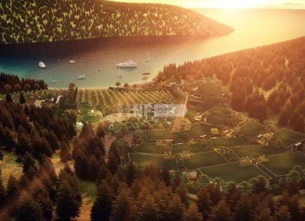 The complex is located in the nature reserve of the Bodrum Peninsula Semi-Olympic pool 300m2 Private beach with pier, sun loungers and umbrellas, beach service View of the sea, pine forests and the Bosphorus lake The total area of the complex is 39.000 m2 Number of rooms: 3+1 Features of territory: footpaths landscaping design...